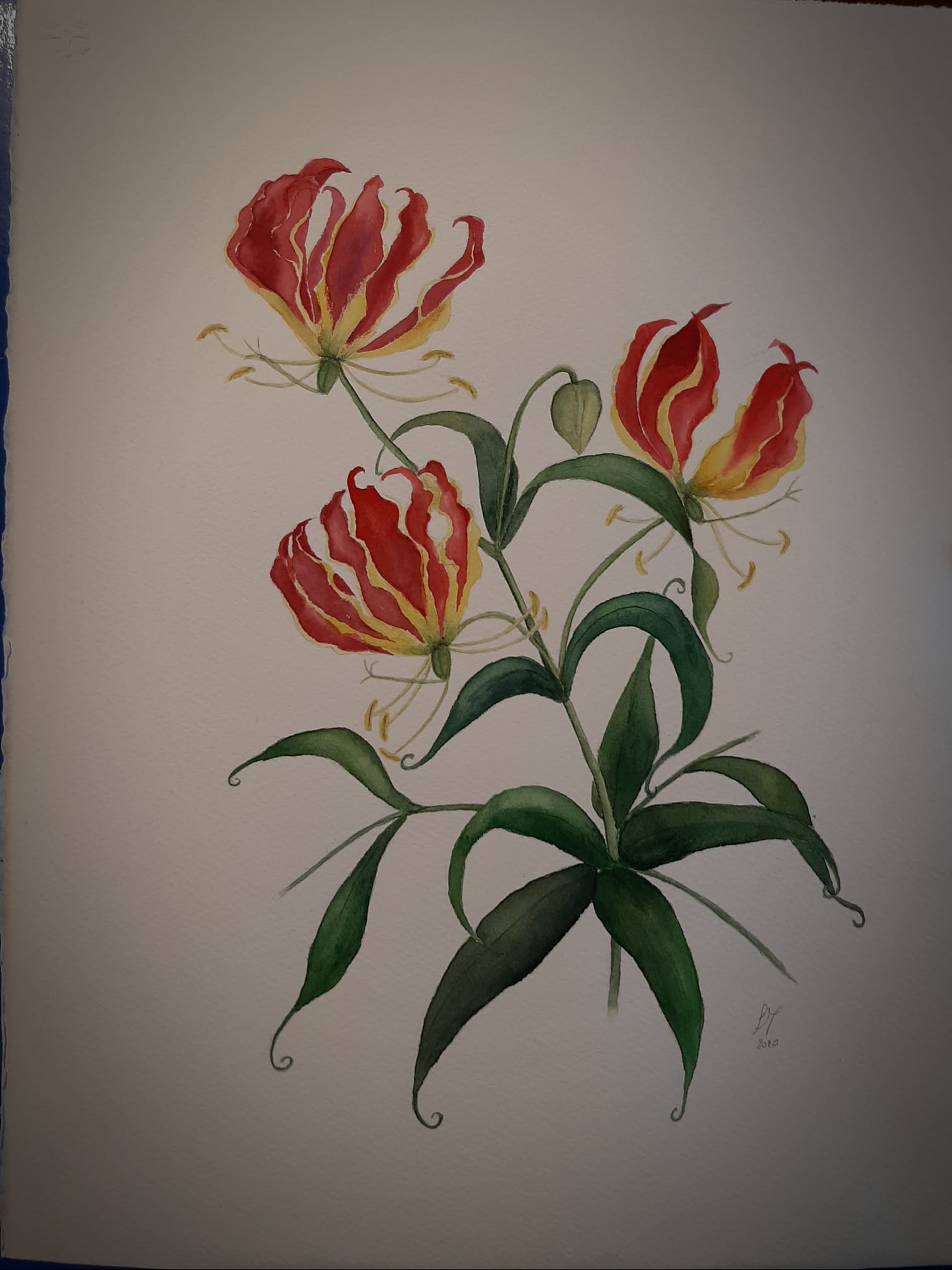 Laura Marchetto, Giglio di fuoco (Gloriosa superba), acquerello, 2020,